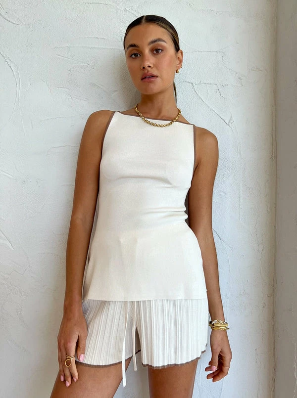 Off-duty has never looked better than the Clifton Knit Top in Cream from Elka Collective. Soft to touch and warm to wear, this form fitting knit cami top flatters in every way. Inspired by 90s styling, it's cut with a boat neckline, spaghetti straps and contrast piping along the neckline. Styled with denim or the matching Carissa Knit Short in Cream, you'll find timeless off-duty elegance in this wardrobe staple. DETAILS & CARE Fabric: 57% Viscose 25% Polyester 15% Nylon 3% Elastane – Form fitting – Boat neck – Spaghetti straps – Contrast piping – Soft texture Our Coco girl Eden wears a size 8 AU / Small. Eden's height is 175cm. COCO STYLING TIP Style with the Elka Collective Carissa Knit Short in Cream, Porter Harp Ring in Gold, Porter Triple Heirloom Ring in Gold, Amber Sceats Hunter Bracelet in Gold, Porter Heirloom Bangle 6mm in Gold, Amber Sceats Coco Bracelet in Gold, Porter Tear Drop Huggies in Gold, Porter Wave Ring Set in Gold, and the Alias Mae Clara Slide in Cream.