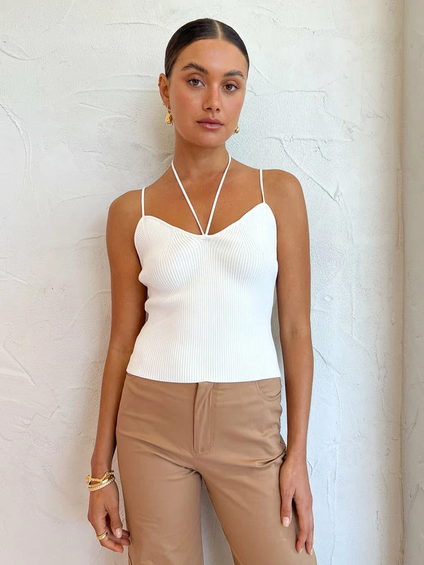 A Manning Cartell cult favourite has arrived with the No Limits Knit Cami in White. Delicately crafted from a stretchy ribbed material, this knitted cami features thin rouleau straps, removable halter straps and a sweetheart neckline that is designed to finish at the waist. Adored for its simplistic versatility and body-hugging silhouette, Coco girls will have this new summer essential on high rotation for their work to weekend wear. DETAILS & CARE Fabric: Main: 65% Recycled Viscose, 35% Nylon- Knitted top- Designed for a slim fit- Stretchy ribbed material- Thin rouleau straps- Fitted silhouette- Sweetheart neckline- Ribbed material- Straight hemline- Removable halter strapsCare Instructions: Cold hand washOur Coco girl Eden wears a size AU 8 / small.Eden’s height is 175 cm. COCO STYLING TIP For your next special occasion, complete the look with the Manning Cartell Cool Clique Hipster Pant in Clay, Porter Hailey Twist Necklace in Gold, Amber Sceats Emma Earrings in Gold, Amber Sceats Emma Earrings in Gold, By Charlotte Dream Weaver Cuff in Gold, By Charlotte Stardust Cuff in Gold, LMS The Violet in White, Amber Sceats Electra Ring Set in Gold, Porter Triple Heirloom Ring in Gold and the Brie Leon Mini Camille Bag in White Brushed Recycled Croc.